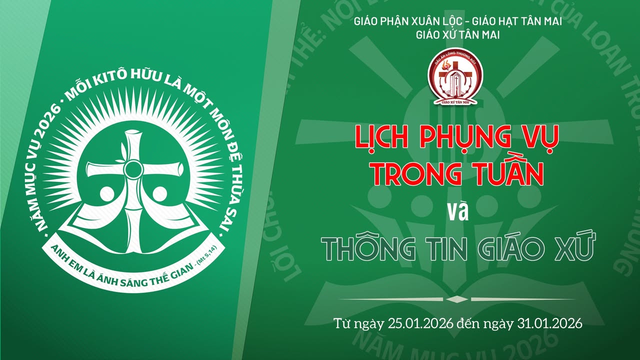 LỊCH PHỤNG VỤ TRONG TUẦN TỪ NGÀY 25/01/2026 ĐẾN NGÀY 31/01/2026: